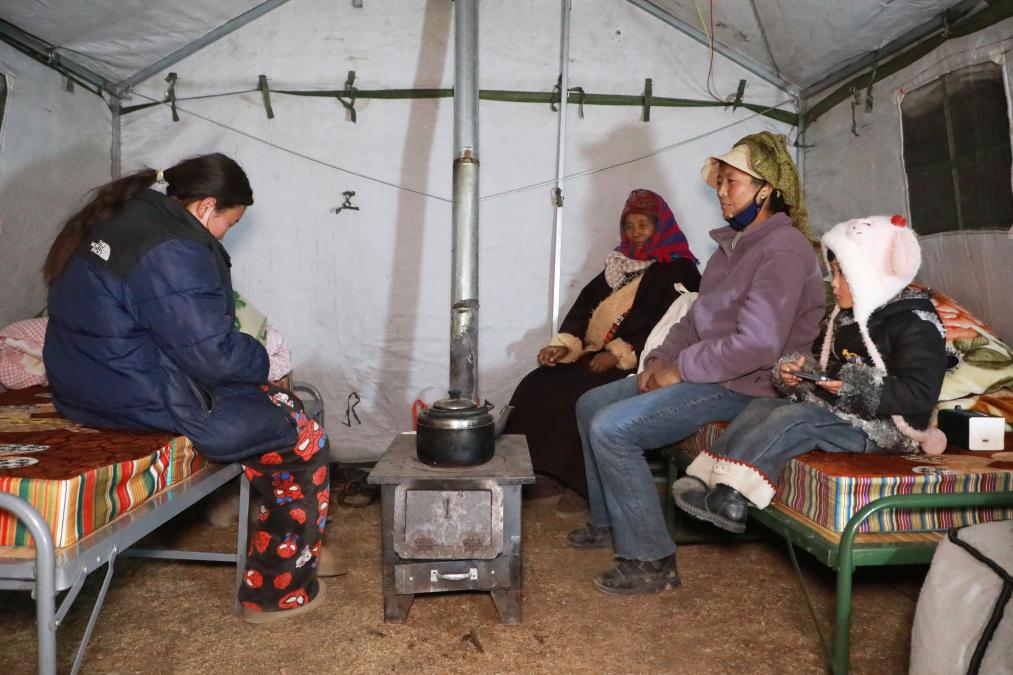 正在火炉旁取暖的村民丁主告诉记者,地震发生时,他正在山上捡柴火,赶回家时发现,家人都跟随干部转移到了村里的空地上。