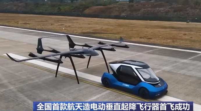 2月6日,由中国航天科技集团九院研制的全国首款航天造电动垂直起降低空飞行器,在重庆永川大安机场首飞成功,圆满完成各项性能验证。