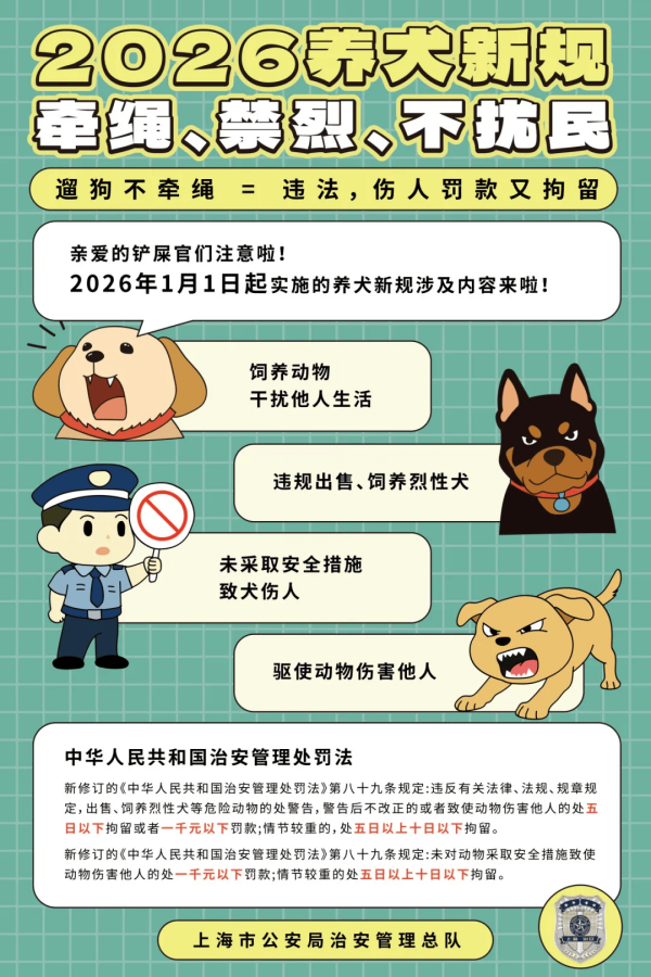 2026年伊始,新修订的《中华人民共和国治安管理处罚法》(以下简称“新治安法”)就成为铲屎界关注的重点。一方面,新治安法自1月1日起正式实施,为养犬划上红线,另一方面,警方对犬只伤人事件的处理,也引发广泛关注。