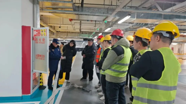 在施工工地层面,为加强建筑工地消防安全管理,王府井消防救援站创新工作机制,联合属地街道、派出所,通过定期会商、联合检查、协同培训等方式,实现资源共享与力量互补。消防救援站深入辖区在建工地开展消防安全培训,消防宣传员结合典型火灾案例,剖析施工工地常见隐患,并针对其环境复杂、人员流动大的特点,采取“理论讲解+实操演练”模式。培训重点涵盖初期火灾扑救、火场逃生自救及消防器材使用等技能,消防员现场“手把手”指导施工人员操作灭火器、连接消防水带,确保参训人员切实掌握基本防火灭火技能,为工地拧紧消防“安全阀”。