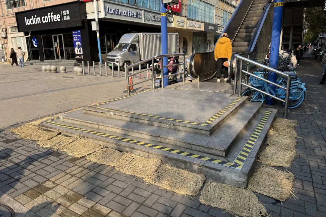 在辖区内地铁一号线彭浦新村站、共康路站出入口,工作人员顶风冒寒,沿着楼梯台阶下逐级铺设防滑草垫,为通行的市民铺设出一条安全便捷的“防滑通道”。工作人员还对易结冰路段进行常态化巡查,提前撒布融雪盐,织密城市道路“隐形安全网”,确保道路畅通无阻、居民出行无忧。