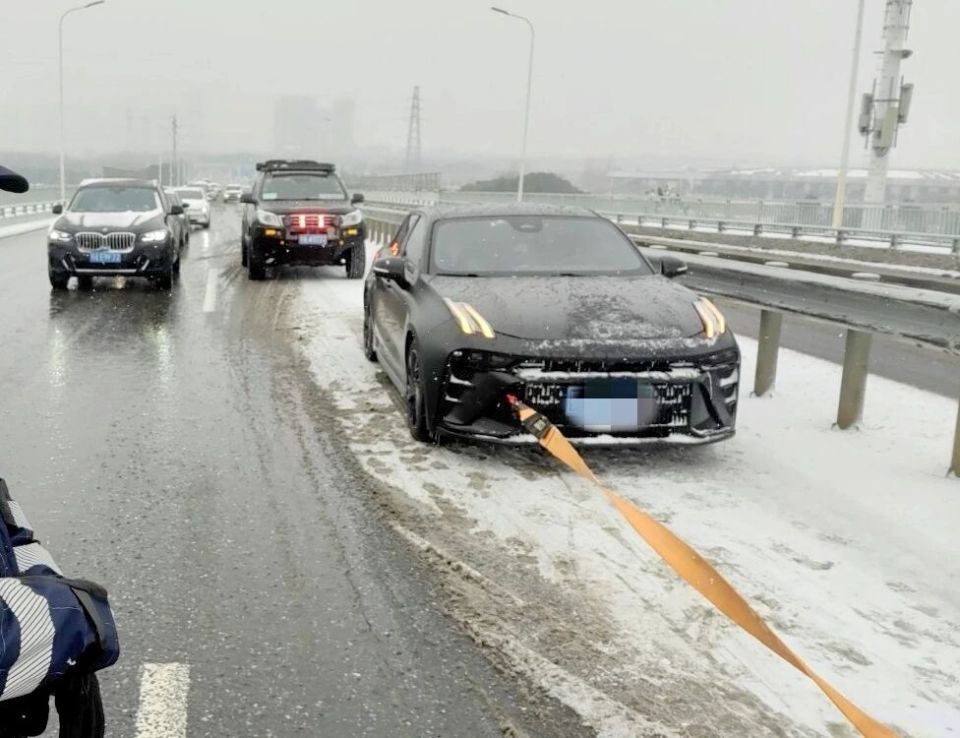 1月20日凌晨,武汉城区转为中到大雪,气温骤降至零下。野芷湖大桥桥面结冰严重,一辆小轿车因打滑抛锚,司机被困风雪中。接到求助后,正在附近巡查的队员刘海波立即带领小组赶往现场。寒风凛冽,能见度低,他们熟练设置警示标志、固定牵引绳,在湿滑的桥面上协力推车。“一、二、三——拉!”伴随着整齐的口号,被困车辆被稳稳拖至安全区域。全程不过十分钟,交通很快恢复畅通。