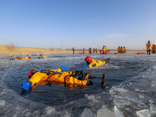 为提升全市消防救援队伍冰域灾害应急救援水平,内蒙古巴彦淖尔市消防救援支队近日组织开展为期7天的冰域救援技术培训班,来自全市消防救援队伍9个消防站、政府专职队、市应急救援支队和蓝天救援队的42人参训。