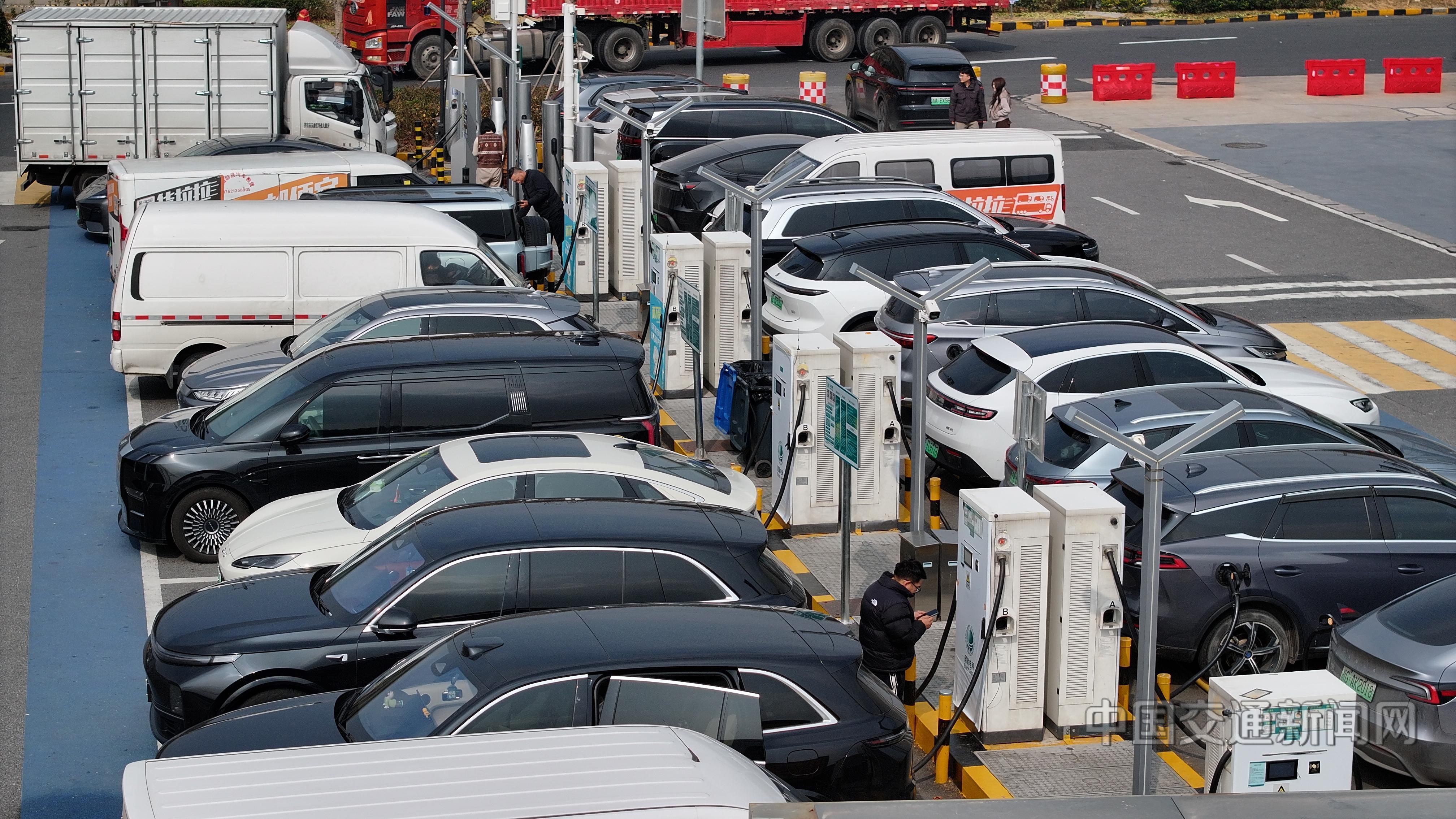 春运启动,沪杭高速公路浙江嘉兴服务区在配备87把快速充电枪的基础上,增配移动充电机器人进行应急充电,保障新能源汽车充电需求。