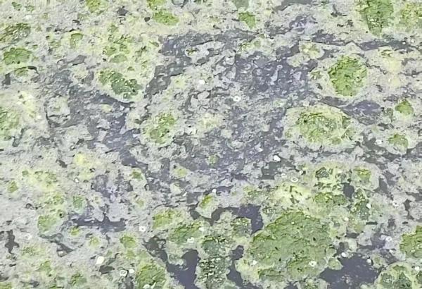 在响水县陈家港镇太平路附近的涉事养殖场。在养殖场外围,看到一道长长的围墙将养殖场与外部农田隔开,围墙外侧的灌溉沟渠内,水体呈现出令人触目惊心的黑褐色,水面被厚厚的绿色浮萍、水藻完全覆盖,几乎看不到清澈的水面,部分区域甚至出现了明显的油污状漂浮物。